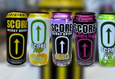 Bebidas energéticas, aguas, jugos y confites al por mayor.